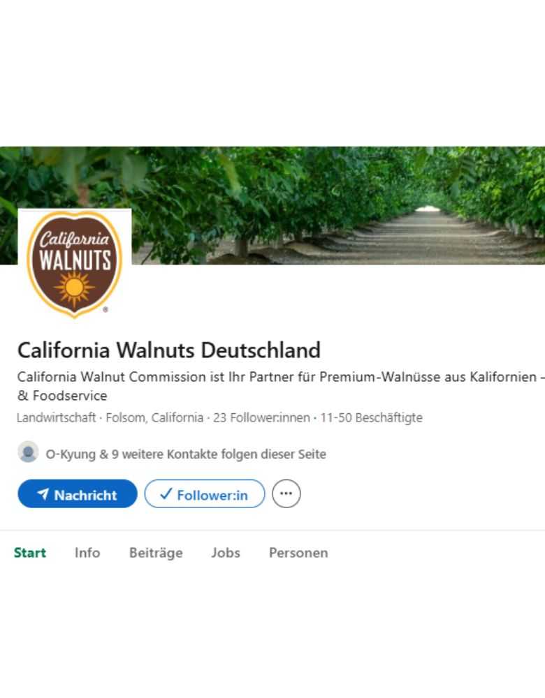 Ab sofort ist die California Walnut Commission mit einem eigenen LinkedIn-Account für den deutschen Markt vertreten: California Walnuts Deutschland